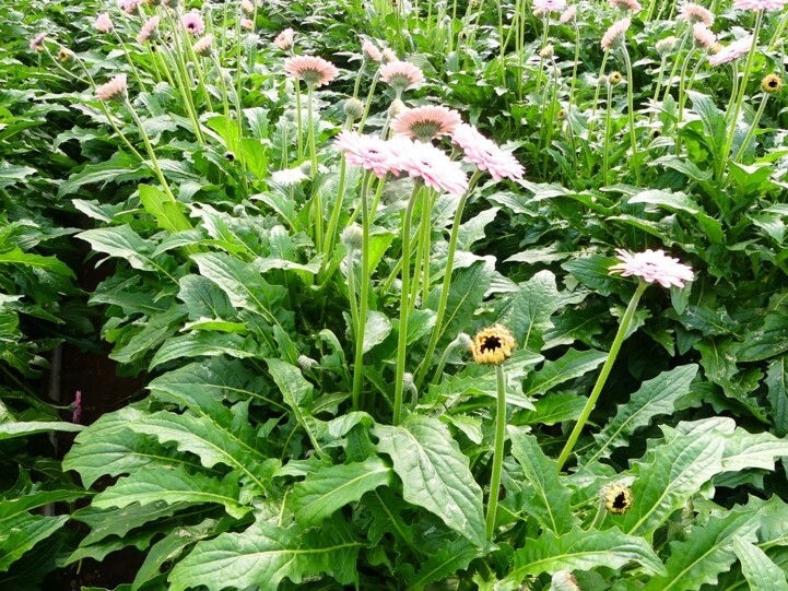 Gerbera’s produceren meer stevigere bladeren en dikkere bloemstengels en grotere bloemen tov het onbehandelde gedeelte in het bed ernaast
